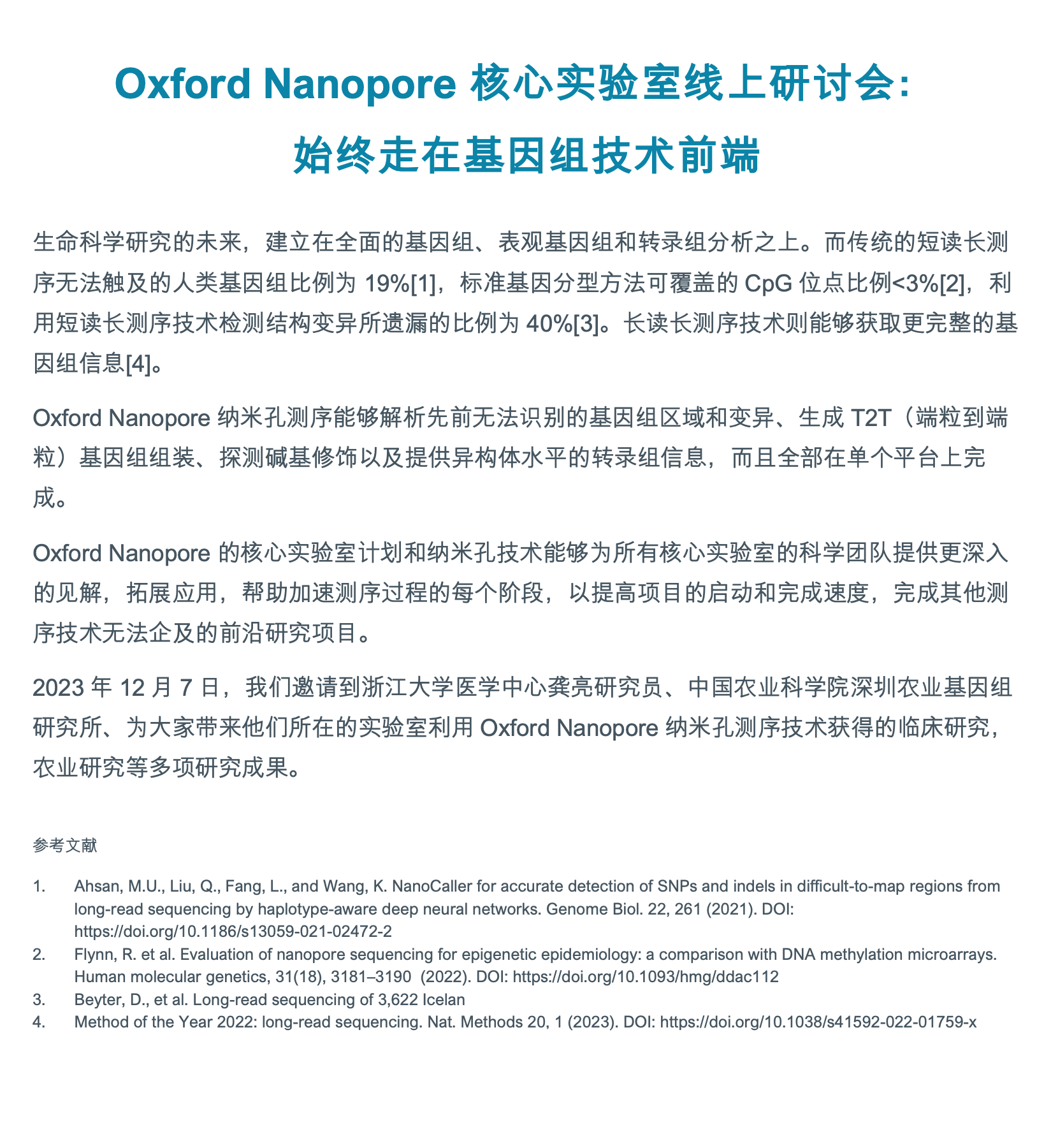 Oxford Nanopore核心实验室线上研讨会:始终走在基因组技术前端